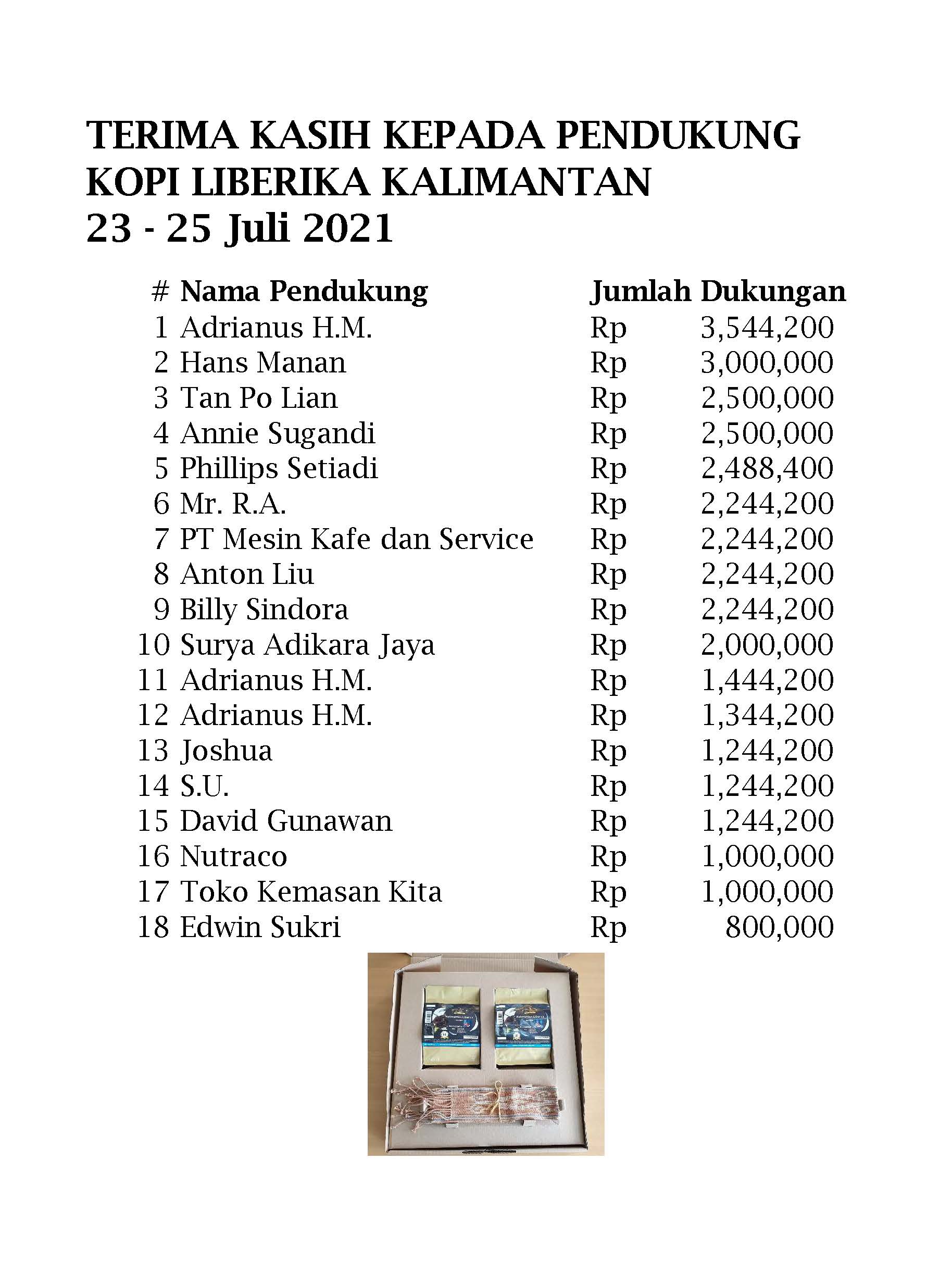 Daftar Pendukung Lelang Paket Kopi Liberika Kalimantan Juli 2021